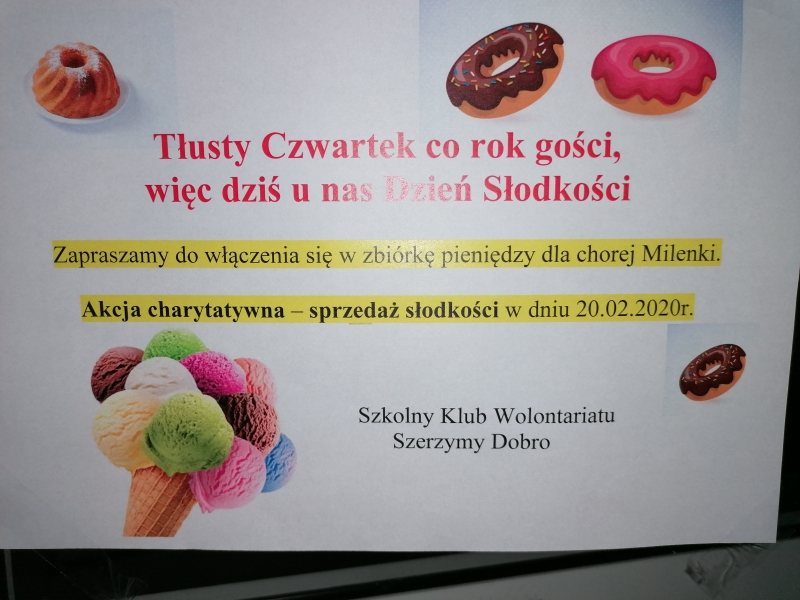 Start Start » Liceum Ogólnokształcące » 2019/2020 » Cenne kalorie, czyli charytatywny Dzień Słodkości
