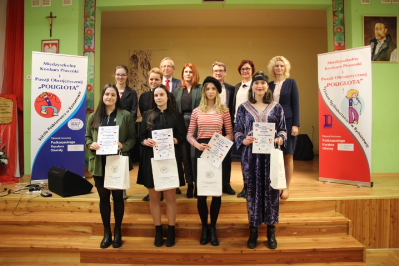 W imieniu swoim oraz Dyrekcji Zespołu Szkół Publicznych w Rymanowie pragnę podziękować wszystkim uczestnikom, którzy przyjęli zaproszenie i wzięli udział w naszym konkursie, bo to dzięki Wam mógł się on odbyć. Drodzy uczestnicy 13 edycji Międzyszkolnego Konkursu Poezji i Piosenki Obcojęzycznej „POLGOLOTA” gratuluję Wam ogromnego talentu muzycznego oraz językowego, a także odwagi i życzę wielu podobnych sukcesów w przyszłości. Pragnę także podziękować wszystkim nauczycielom – opiekunom za trud, jaki włożyli w przygotowanie swoich podopiecznych do konkursu. Równie serdeczne podziękowania kieruję do członków Jury którzy zgodzili się wykonywać tę jakże trudną i odpowiedzialną pracę jurorów przez trzy dni zmagań konkursowych. Poziom startujących uczestników był tak wysoki, iż w trzecim dniu po raz pierwszy w historii naszego konkursu Jury przyznało nagrody Grand Prix. Zdaję sobie sprawę z tego, iż wyłonienie zwycięzców nie należało do łatwych zadań, jako że wszyscy uczestnicy do konkursu byli doskonale przygotowani i prezentowali wyjątkowo wysoki poziom, co jednogłośnie i niejednokrotnie podkreślili wszyscy jurorzy. Oczywiście podziękowania należą się także naszej kochanej młodzieży, która bardzo chętnie i aktywnie włączyła się w organizację konkursu, poprowadziła go i wystąpiła w nim, tym samym udowadniając, że ma ogromny potencjał i talent.